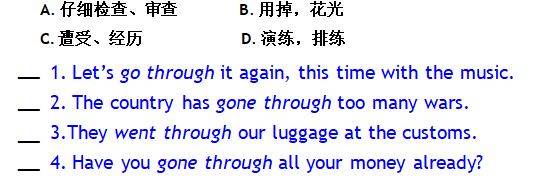 Directions: Choose the appropriate translation for theexpression “go through” in the following sentences.