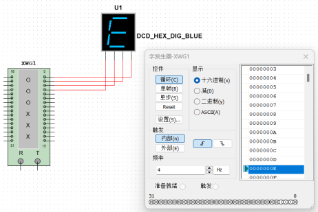 图4.21 十六进制数码管仿真测试