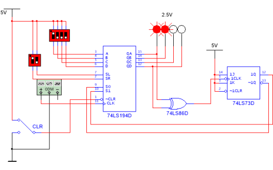图7.28 双向移位寄存器 74LS194功能测试