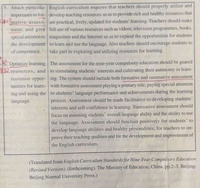 (5) Attach particular importance toformative assessment and give special attention to the dove elopement ofcompetence.