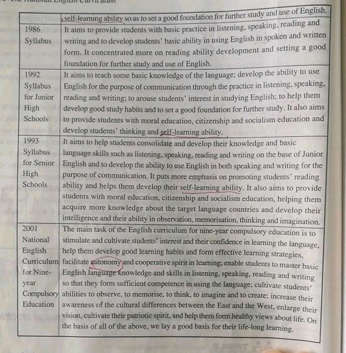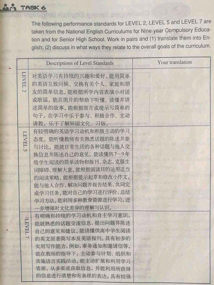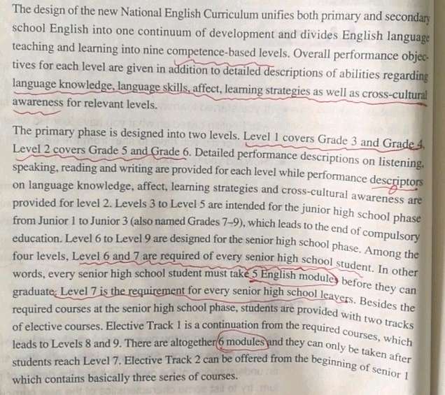 In this unit, we have introduced the new English curriculum. We learned the history of English language teaching in China with an emphasison the development in last two decades. With regard to the new English curriculum, we mainly discussed its designing principles and its goals and objections. We also discussed the challenges facing all English teachers. It is normal that we feel pressured in the time of change. However, we need to understand the reasons for the change and be prepared to undertake them.