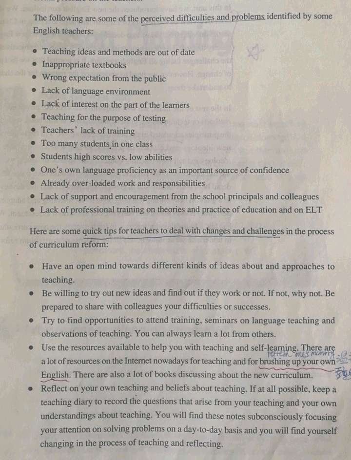 Faced with the new curriculum, English teachers are expected to change in many ways.