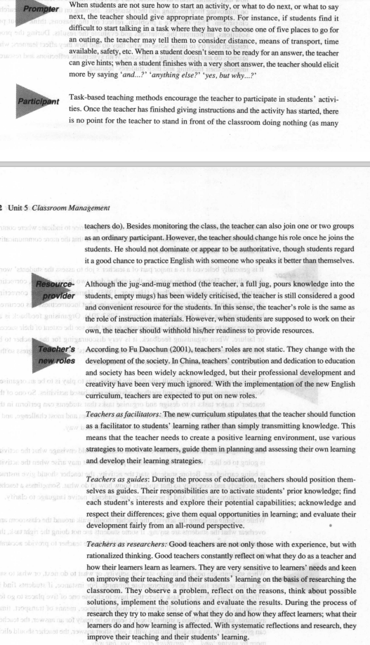 教学重点、难点: 1.重点:(1)Classroom management (2)Roles of teachers in the classroom 2. 难点: Classification of question types | |||||