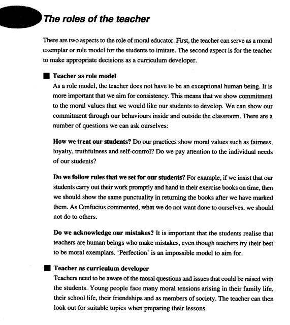 III. The roles of the teacher