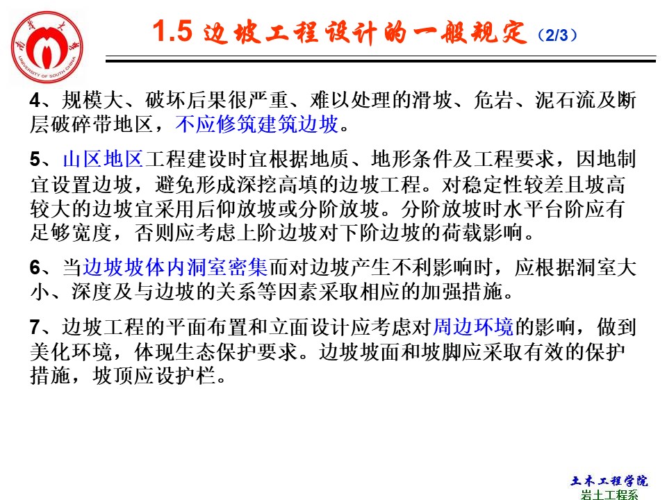 4、规模大、破坏后果很严重、难以处理的滑坡、危岩、泥石流及断层破碎带地区,不应修筑建筑边坡。