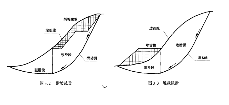 在一般情况下,滑坡减重和堆载阻滑都只能减小滑体的下滑力或增大阻滑力,不能改变其下滑的趋势,因此它们常与其他整治措施配合使用。