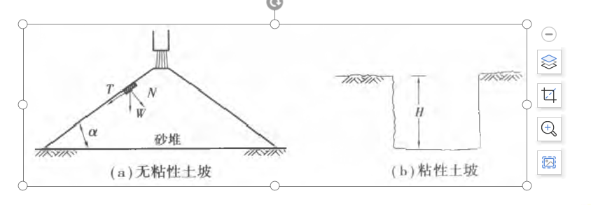 对于黏性土坡,由于粘聚力作用,只要坡体高度不超过一定值,无论坡度多大,都可以维持稳定。