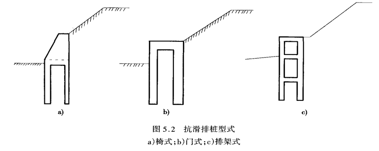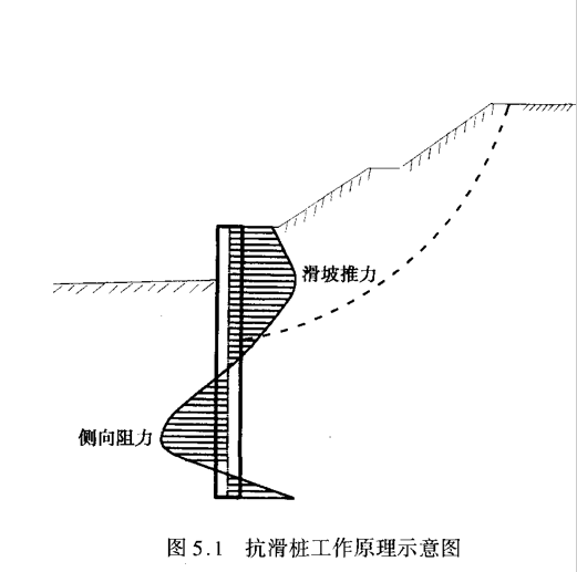 抗滑桩:用于抵抗边坡或斜坡岩土体滑动而设置的横向受力桩,见图5.1。
