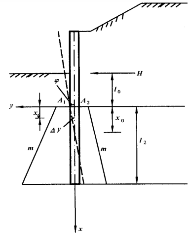 把滑面以上抗滑桩受荷载段上所有的力均当作外力,桩前的滑体抗力按其大小从外荷载中减去,对滑面以下的桩段取脱离体,滑面以上的外荷载对滑面处桩截面产生弯矩和剪力。滑面下桩周土的侧向应力和土的抗力可由脱离体的平衡而求得,并进而计算桩的内力。