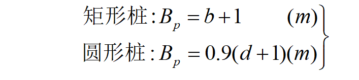 为了简化计算,即将空间受力状态简化为平面问题,考虑到桩截面形式的影响,将桩宽(或桩径)换算成相当于实际工作条件下的矩形桩宽度Bp称为桩的计算宽度。