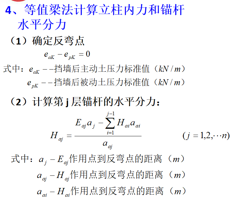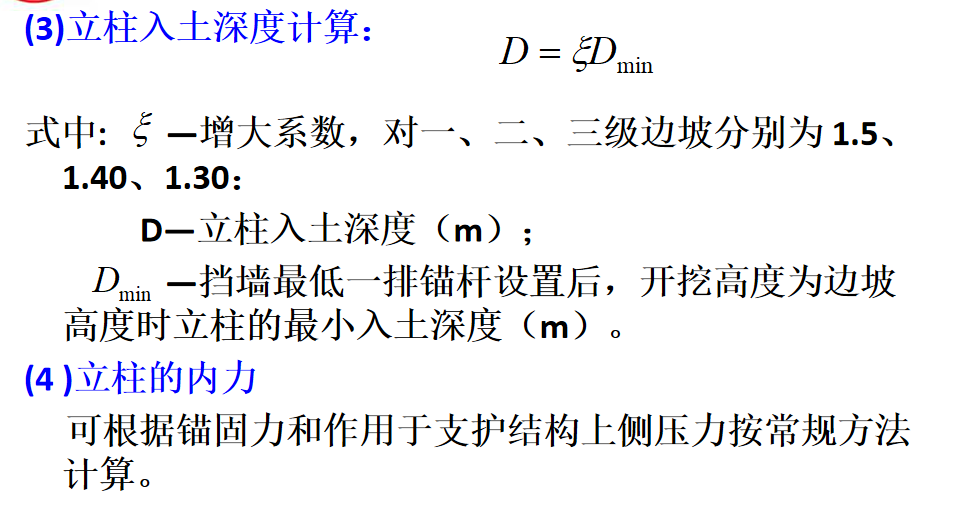 当立柱入土深度较大或为岩层或坡脚土体较坚硬时,可视立柱下端为固定端,按等值梁法计算。