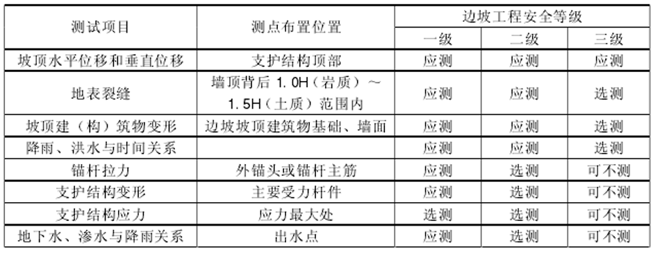 (1)边坡工程监测项目选择