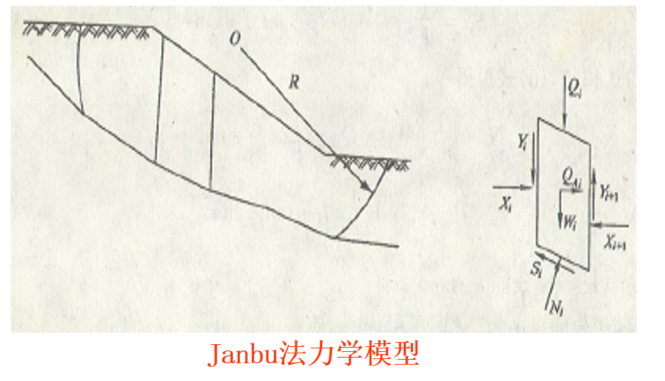 对于松散均质的边坡,由于受基岩面的限制常产生两端为圆弧、中间为平面或折线的复合滑动面,可用Janbu法分析其稳定性