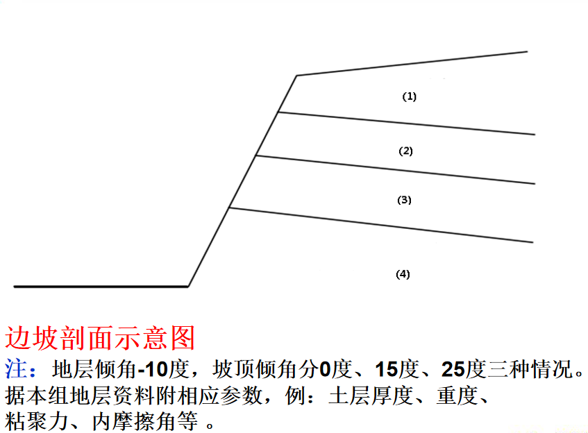 (1)据提供的边坡基本资料进行边坡支护设计,支护形式根据边坡工程地质条件选定;