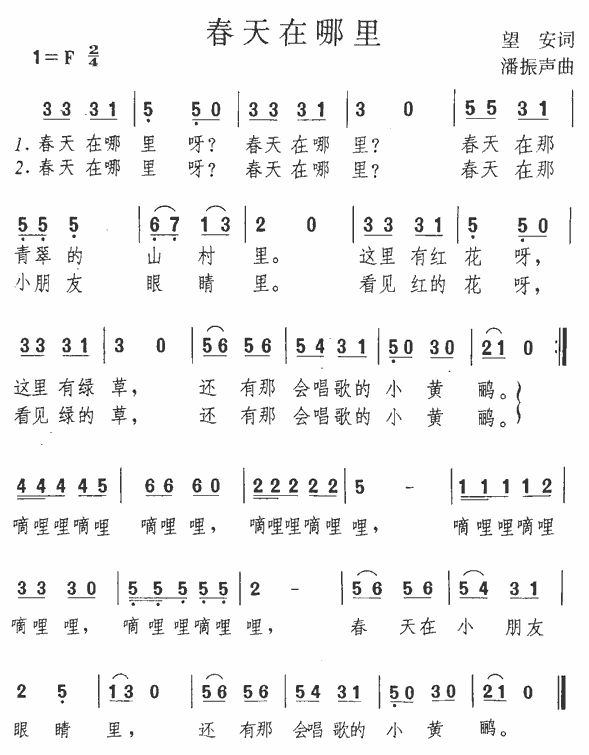 1、知识与技能目标:通过学习《春天在哪里》,使学生用轻快活泼的语气演唱。