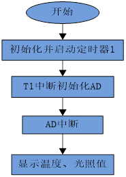 (4) 如果flag为1,则将存储了温度AD值的ADC_RES和ADC_RESL寄存器数值经过处理后累加,温度中断次数加1;如果flag为-1,则将存储了光AD值的ADC_RES和ADC_RESL寄存器数值累加,光中断次数加1。