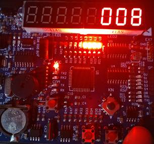 (2) 在开始之后,不断按下按键K1,数码管上显示的个数不断增加,同时LED从左到右逐个亮起,作为时间信号。