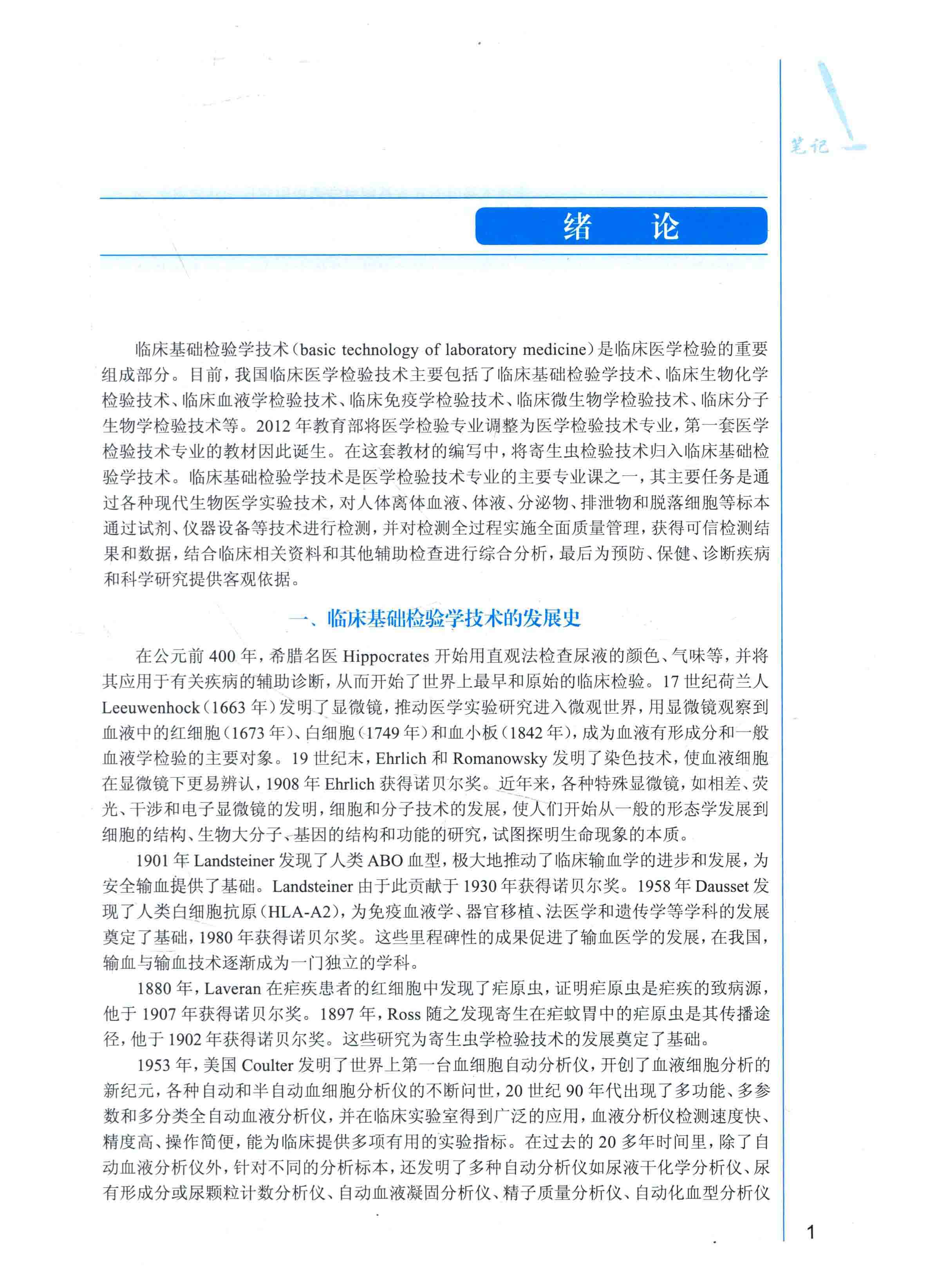 • 1.1 临床基础检验学技术的发展史、特征、应用