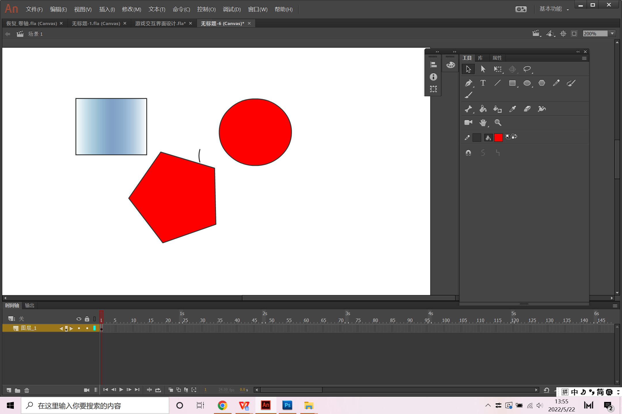椭圆工具作为常用绘图工具,能绘制正圆、椭圆、圆环和圆弧。圆弧的绘制需在属性面板里设置好开始角度和结束角度,而圆环需设置内径。刷子工具能绘制出笔刷般的笔触。