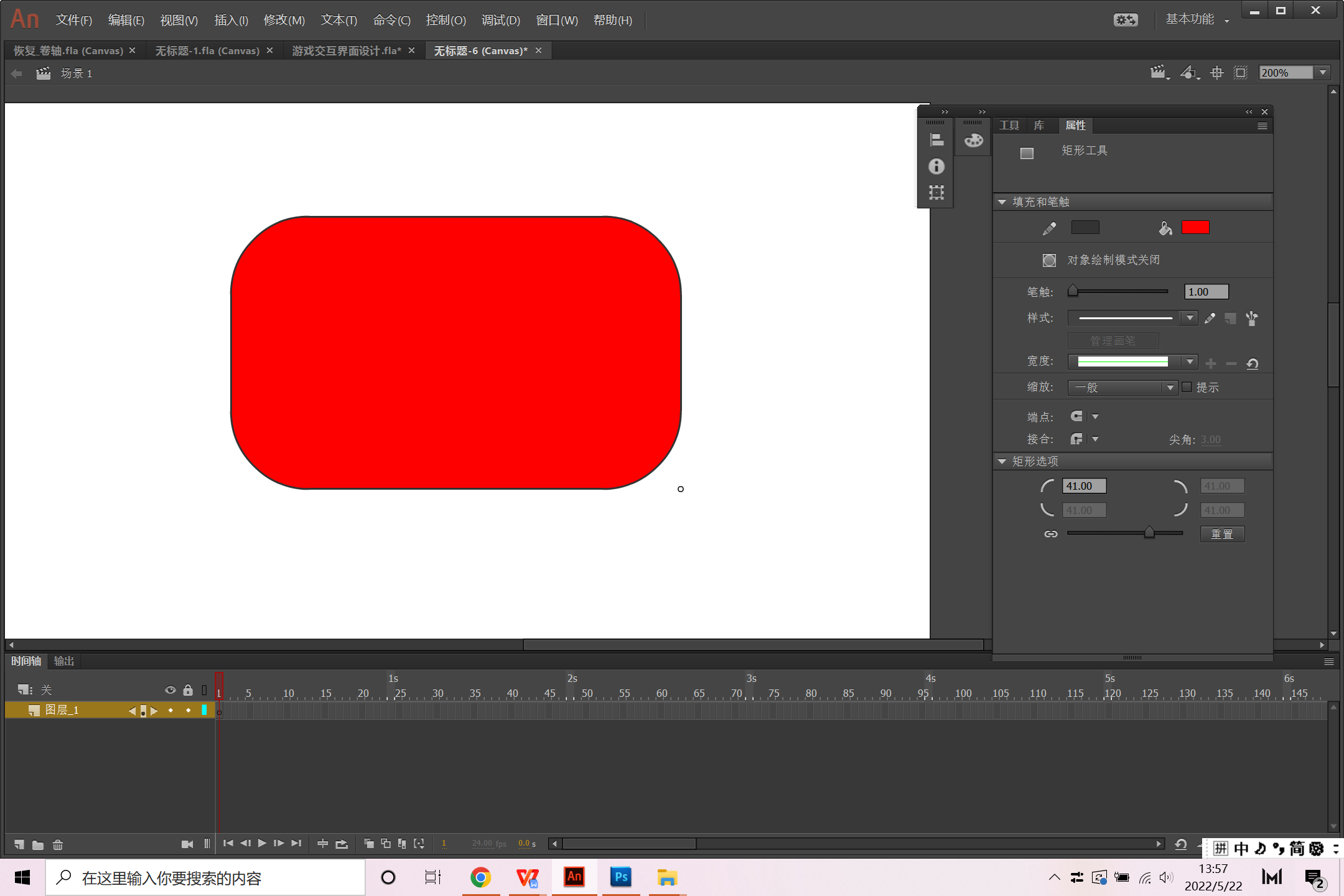 1、 矩形属性面板可以设置矩形的各种属性:如圆角大小等