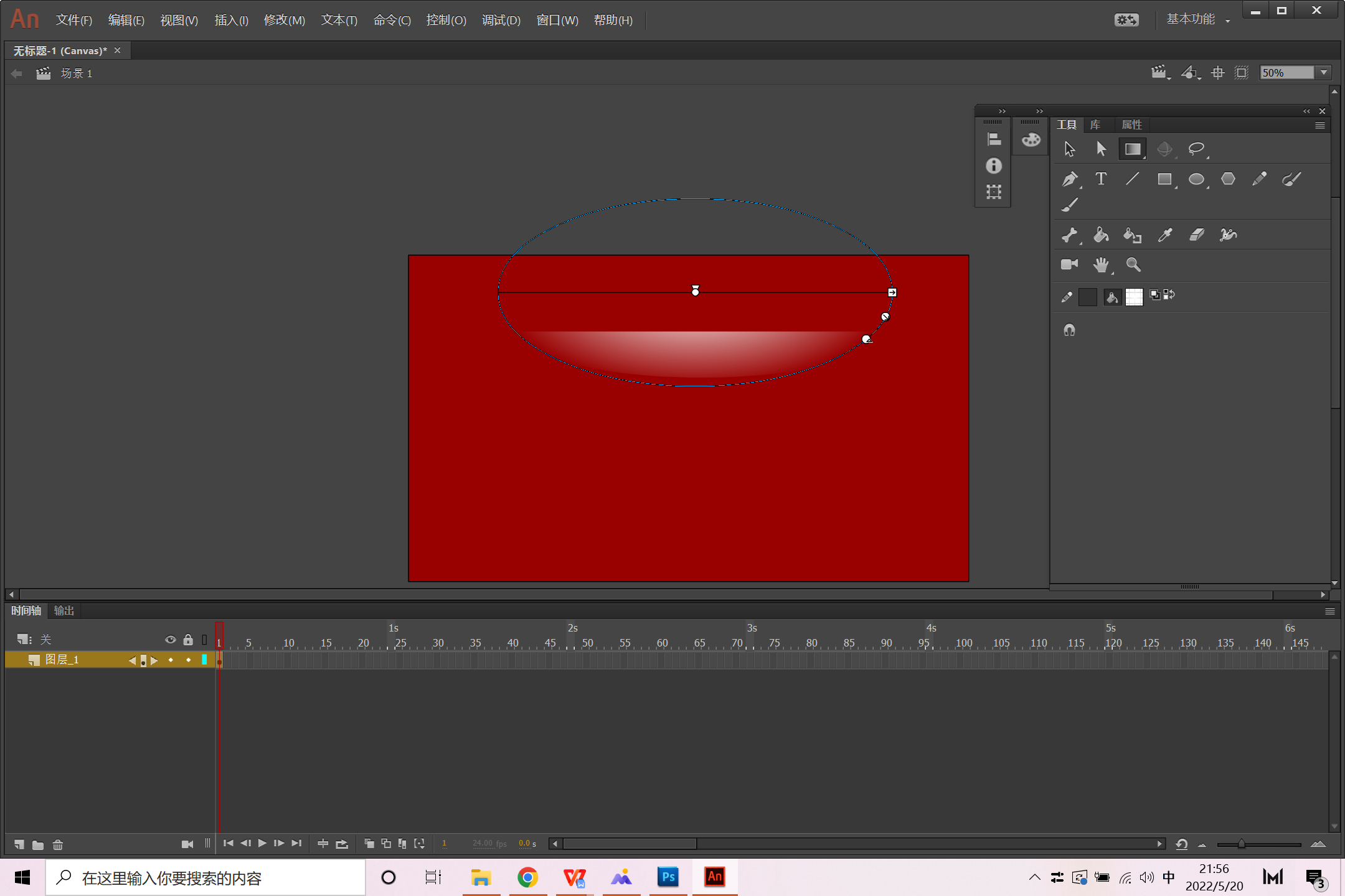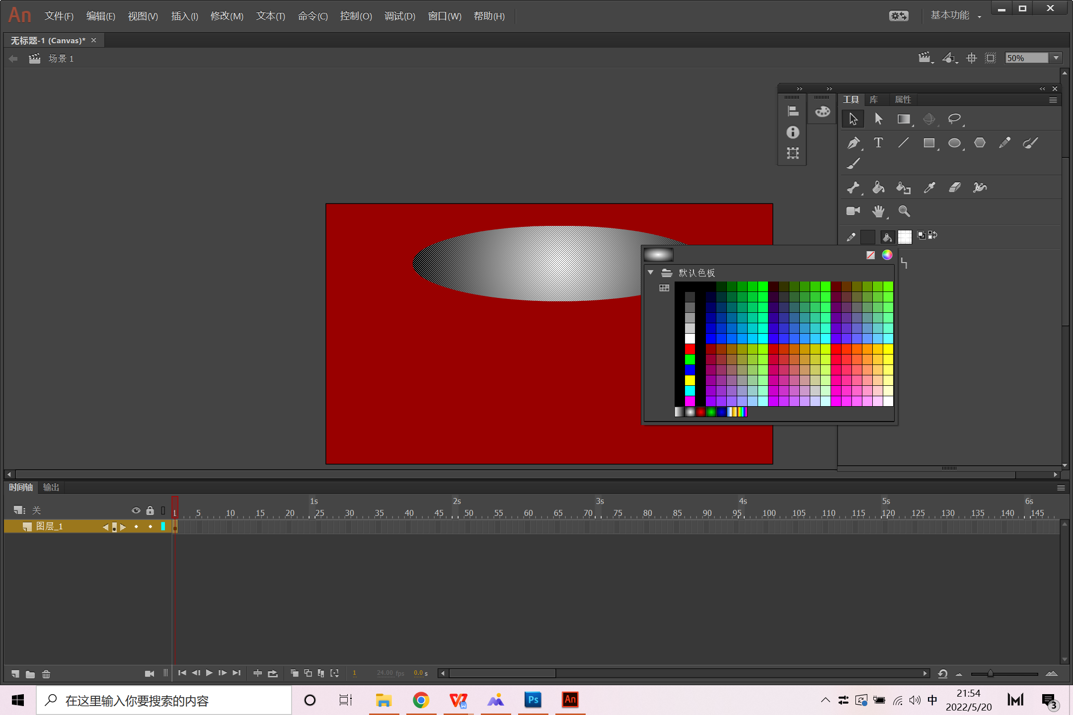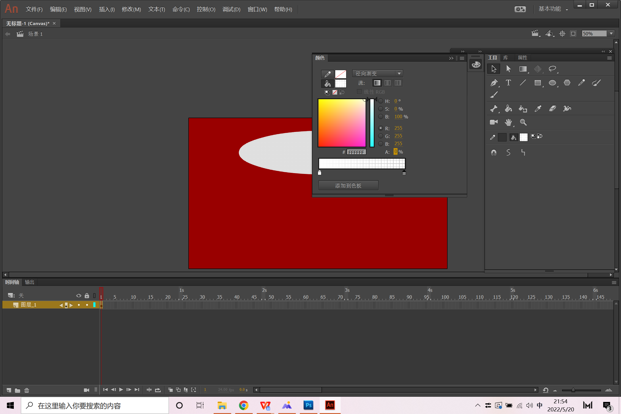 二、属性面板填充舞台颜色为红色。