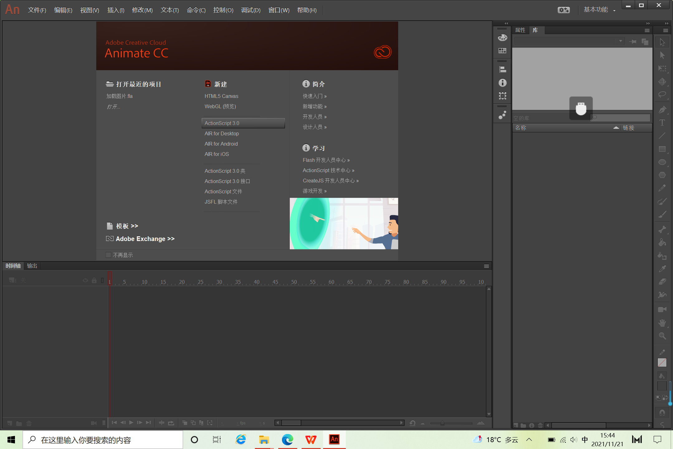 新建一个AS3.0的项目,大小为800*600像素。