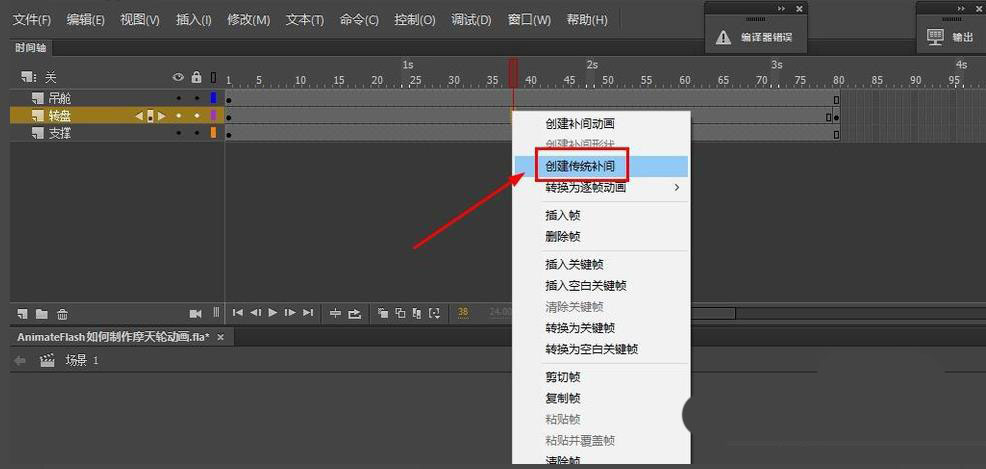 6、接下来创建传统补间动画。