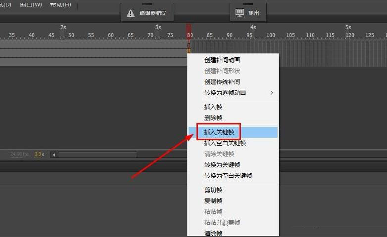 5、在转盘层第80帧右键选择插入关键帧,或者使用快捷键f6。