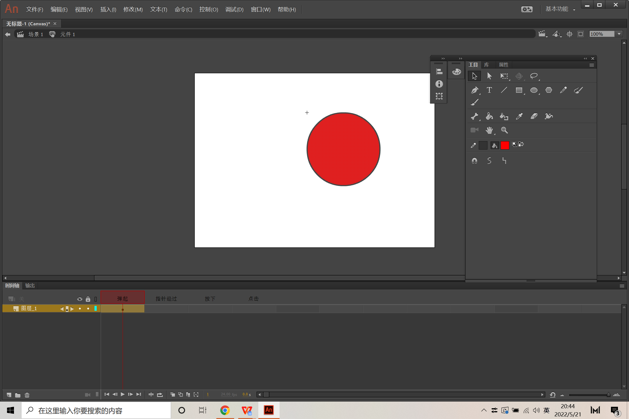 现在,按钮的各种状态所呈现出来的图形画好了,下面我们给这几种状态的图形修改成不同的颜色吧。比如,指针经过的时候修改成为红色的。