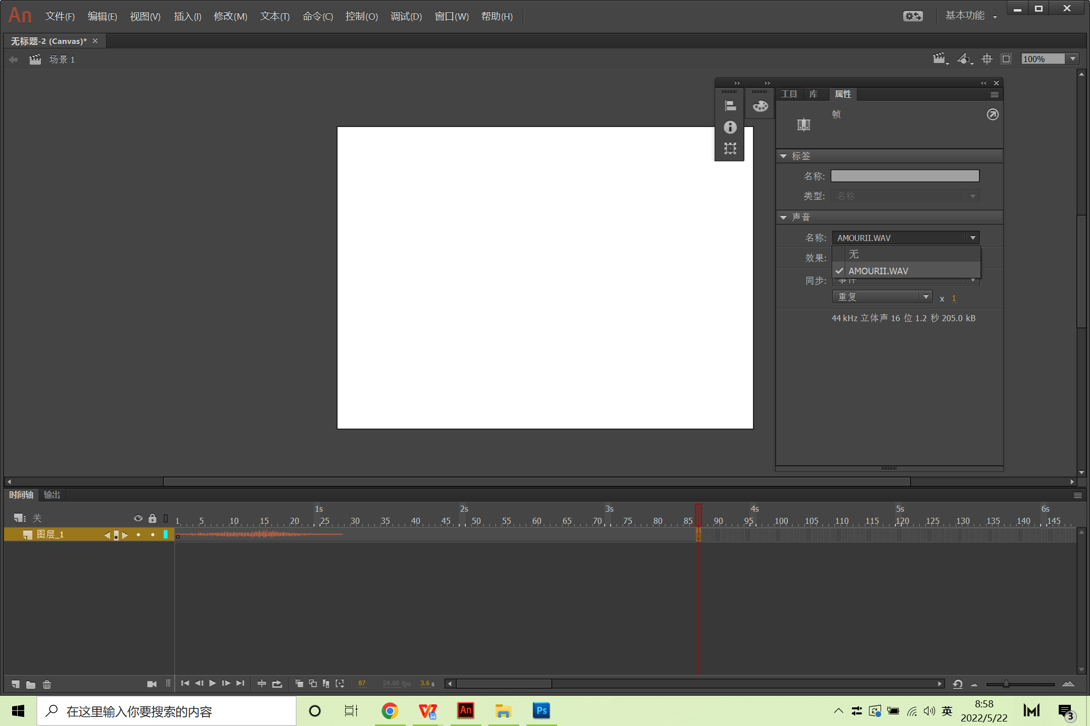 音乐控制有两种方式。一种是导入时间轴,用play,stop等命令进行简单控制;另一种是利用组件工具来控制声音的播放。