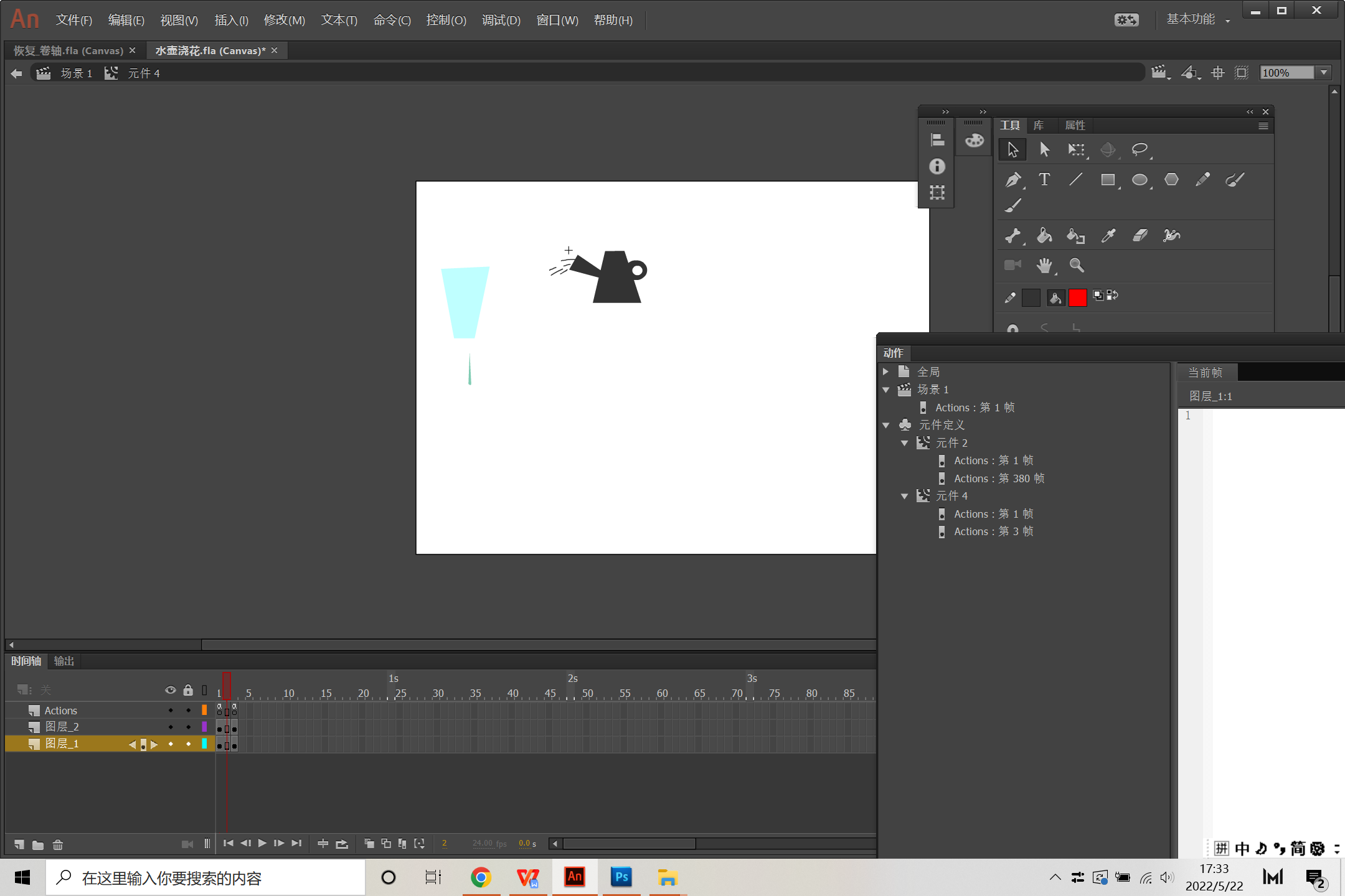 图形绘制如下,并且给水壶制作一个胶水我的动作,分别添加停止命令。