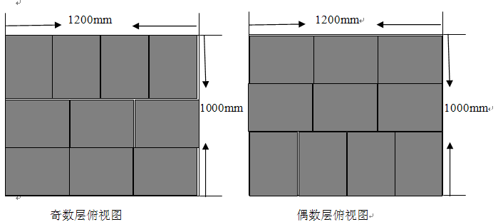 用 WORD 绘图功能绘制示意图;画出托盘码放的奇数层俯视图和偶数层俯视图;在图上标出托盘的长、宽尺寸(以 mm 为单位);用文字说明堆码后的层数;用文字说明此类商品所需托盘的个数;将托盘上的货物以浅灰色填涂。货物组托时均需压缝。
