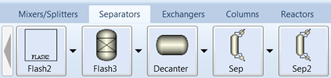 | Flash3 | 三相闪蒸器 | 根据汽-液-液相平衡计算,将进料分为汽-液-液三股出料 | 分相器,汽-液-液单级分离器 |
