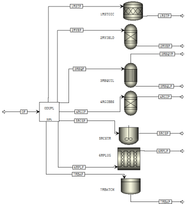 RCSTR、RPlug和RBatch模型,利用动力学模型计算反应速率,从而预测产物组成和流量。该类模型需要用外部Reactions表格定义化学反应计量关系和数据,可处理单相、两相或三相反应。
