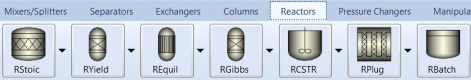 | RYield | 产量反应器 | 模拟规定产量的反应器 | 化学计量系数和反应动力学数据未知或不重要,但已知产物分布的反应器 |