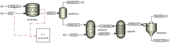 此模拟从上节中创建的模拟开始,需要修改流程图,更改默认物流类型,添加燃烧所需的组分,指定单位操作模型,定义一个Fortran块来控制煤的分解,并分析结果。