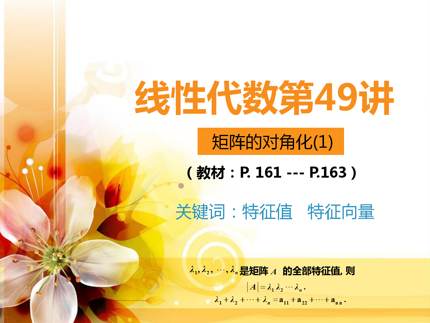 49讲 矩阵的对角化(1).doc(下载附件 210 KB)