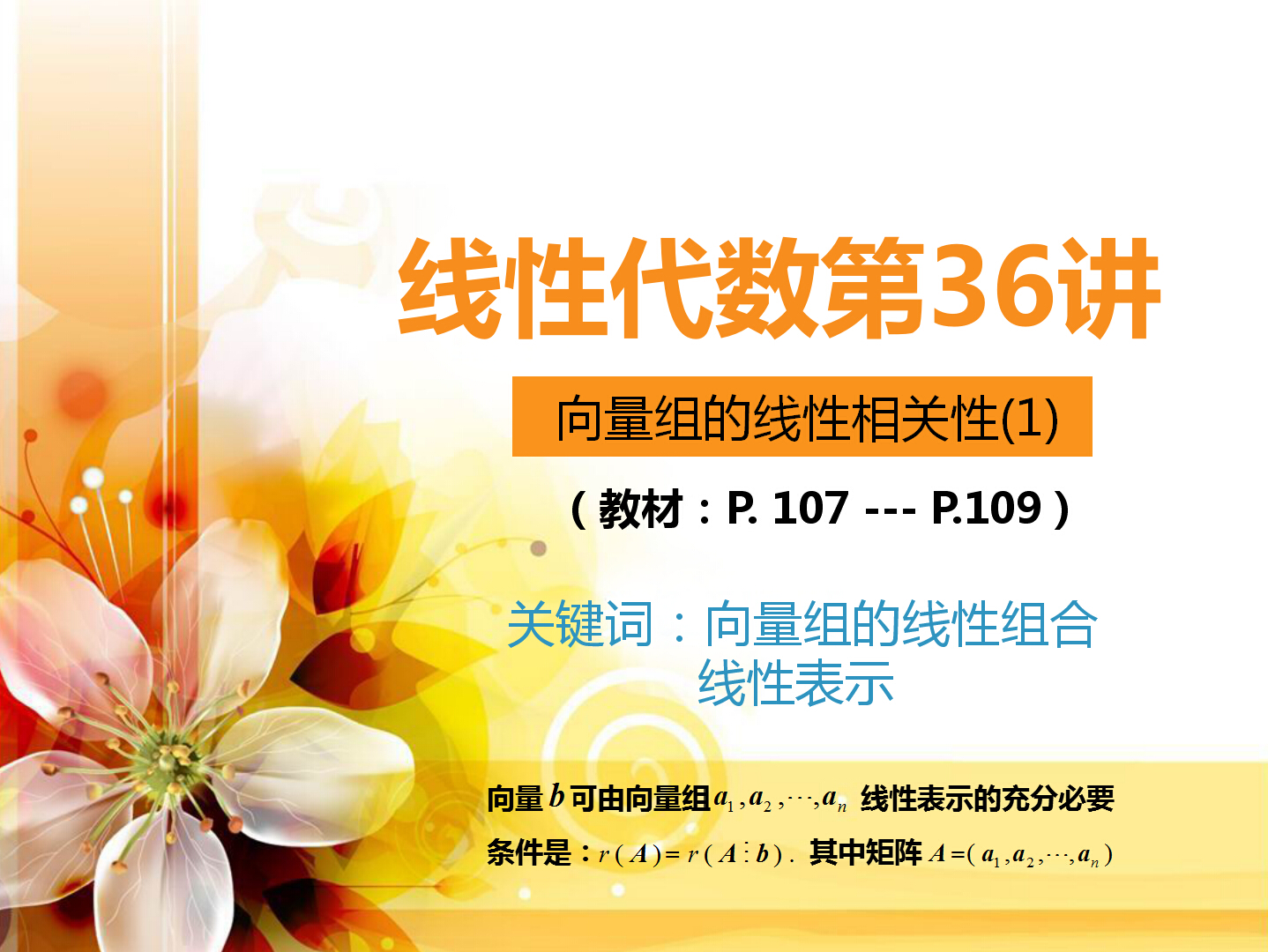 36讲 向量组的线性相关性(1).doc(下载附件 205.5 KB)