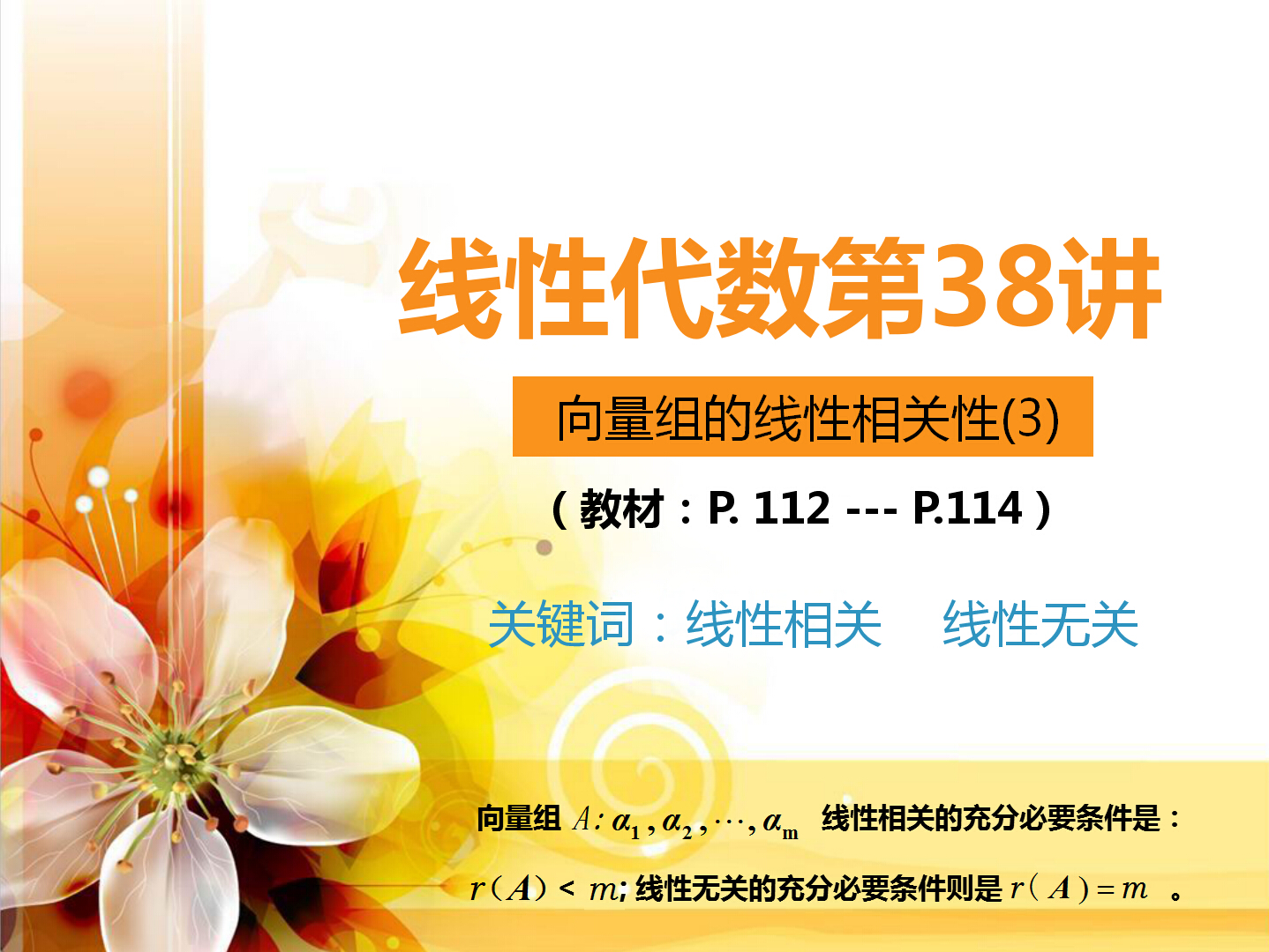 38讲 向量组的线性相关性(3).doc(下载附件 211 KB)