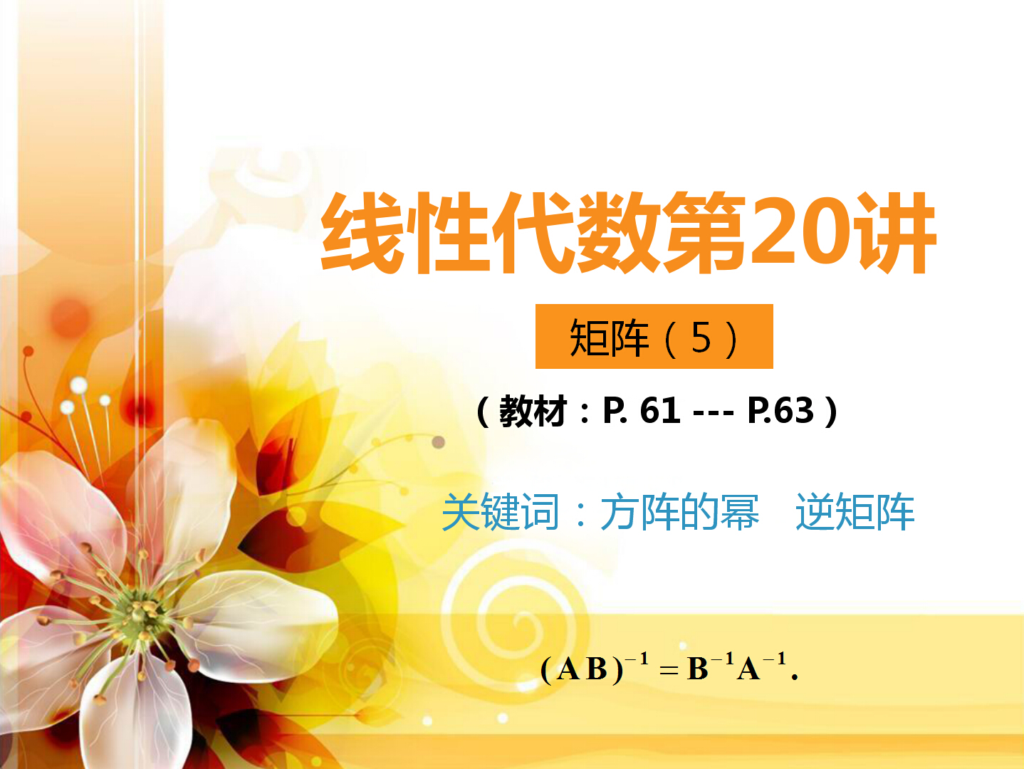 20讲 矩阵(5)方阵的幂和逆矩阵.doc(下载附件 175.5 KB)