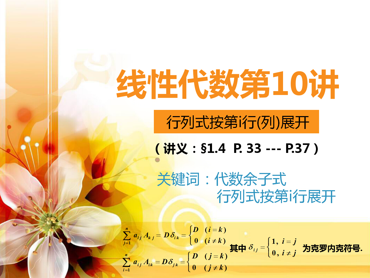 10讲 行列式按第i行(列)展开.doc(下载附件 258 KB)