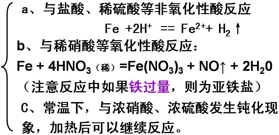 方法2、将样品溶于酸,过滤,观察溶液颜色并进行性质实验。其他……铁的重要化学性质