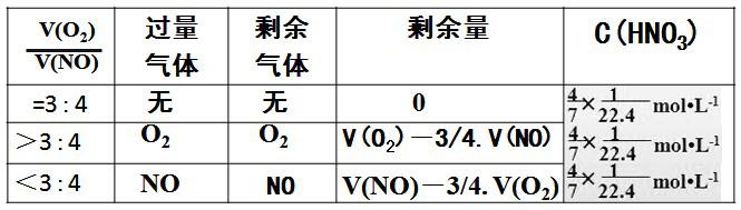 4NO2+O2+2H2O=4HNO3 当氧气剩余时,体积比为 18 :7