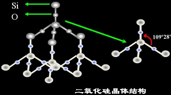 在二氧化硅晶体中,一个硅原子跟4个氧原子结合,同时每个氧原子跟两个硅原子结合。实际上,二氧化硅晶体是由硅原子和氧原子按1 :2的比例所组成的立体网状结构的晶体。它的熔点(1723℃)沸点(2230℃)高,硬度大,不导电,难溶于一些常见的溶剂。而二氧化却是分子晶体,因此它们的物理性质差异较大。