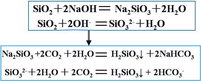 | 碱性氧化物+酸==盐+水 | SiO2是酸性氧化物,却能与氢氟酸发生反应:SiO2+4HF = SiF4↑+2H2O |