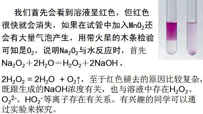 (3)在一试管中加入Na2O2试样,先加入适量的水,然后再滴加几滴酚酞,请你预测实验现象,你能解释这些现象吗?