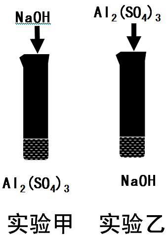 当硫酸铝滴入NaOH中时,生成的Al(OH)3会立即溶入过量的NaOH中,乙中先看不到沉淀,当NaOH完全反应后,继续滴加硫酸铝会与NaAlO2反应生成沉淀。
