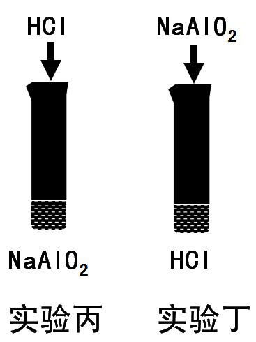 同样由于Al(OH)3是典型的两性的氢氧化物,当NaAlO2滴入HCl中时,生成的Al(OH)3会溶入过量的HCl中,因此丙中一开始有沉淀,后溶解