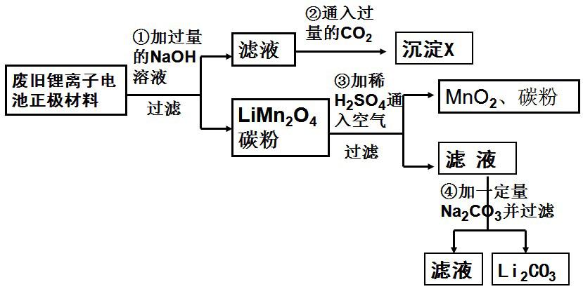 例1、锂离子电池的广泛应用使回收利用锂资源成为重要课题。某研究性小组对废旧锂离子电池正极材料(Li2MnO4、碳粉等涂覆在铝箔上)进行资源回收研究,设计实验流程如下: