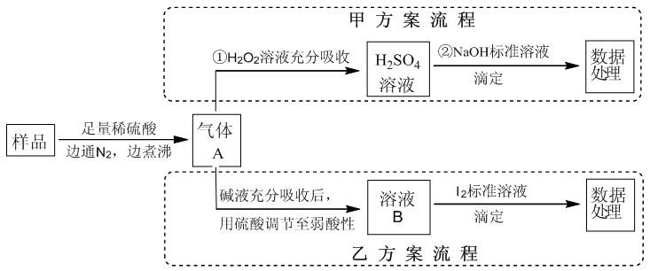 (5)若取样品w g,按乙方案测得消耗0.01000 mol·L-1I2溶液V mL,则1 kg样品中含SO2的质量__________g(用含w,V的代数式表示)。
